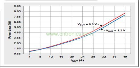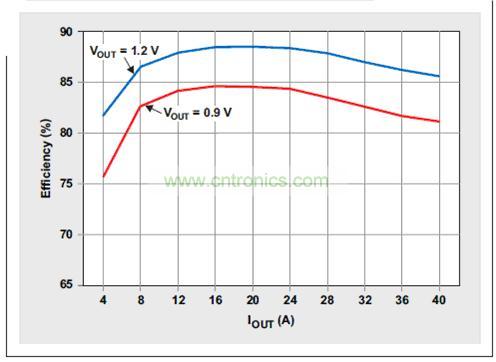 由于每個相位的功率級電流更低,多相實現(xiàn)的輸出濾波器要求也隨之降低。對于一款40-A 二相解決方案來說,向每個電感提供的平均電流僅為20A。相比40-A 單相方法,由于平均電流和飽和電流更低,電感和電感器體積都大大減小。
