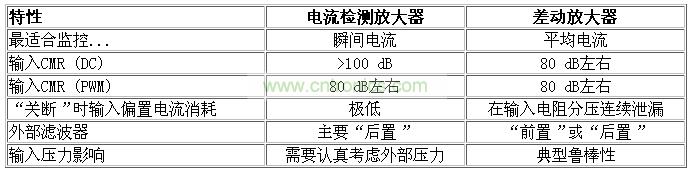 顯而易見(jiàn),雖然電流檢測(cè)放大器和差動(dòng)放大器工作方式不同,卻履行同樣的功能。差動(dòng)放大器將高輸入電壓衰減,使信號(hào)達(dá)到放大器可以接受的電平。電流檢測(cè)放大器將差分輸入電壓轉(zhuǎn)換為電流,然后再轉(zhuǎn)換至以地為參考的電壓;其輸入放大器因采用高壓制作工藝,能承受高共模電壓,。毫無(wú)疑問(wèn),兩個(gè)架構(gòu)的不同將導(dǎo)致其性能差異,設(shè)計(jì)工程師在選擇高端電流檢測(cè)解決方案時(shí)必須考慮這些性能差異。通常,廠商的數(shù)據(jù)手冊(cè)已提供了大部分信息,可根據(jù)精度、速度、功耗及其他參數(shù)對(duì)器件的類型做出正確判斷。然后,器件架構(gòu)內(nèi)在的某些重大差異是無(wú)法在數(shù)據(jù)手冊(cè)中立刻發(fā)現(xiàn)的,但這些也是非常重要的設(shè)計(jì)考慮事宜。下面給出了一些工程師在實(shí)現(xiàn)最佳解決方案時(shí)必須考慮的關(guān)鍵點(diǎn)。