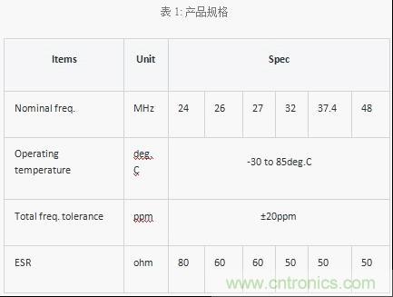 XRCGD系列的產(chǎn)品外觀如圖2所示。產(chǎn)品規(guī)格如表1所示。采用了2.0×1.6mm的外形尺寸,相對于目前民生市場上一般的3225尺寸(3.2×2.5mm)達到了削減60%的小型化。對應(yīng)頻率通過無線通信在主要的各種頻率上疊加,可對應(yīng)面向智能手機等廣泛采用高智能CPU的頻率。頻率精度將初期偏差、溫度特性和長期變化計算在內(nèi)全部的頻率精度在±20ppm以下。主要預(yù)計應(yīng)用于Wi-Fi、Bluetooth® 等無線通信以外、智能手機和可穿戴設(shè)備等高智能CPU中。