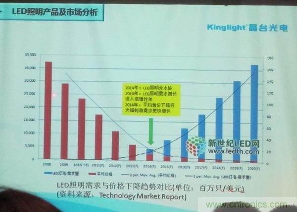 晶臺光電技術(shù)總監(jiān)邵鵬??春肔ED照明未來的發(fā)展,他說,2014年LED照明平均售價的下降將大幅刺激需求快速增長。而價格和可靠性是當前影響LED進入室內(nèi)照明的最重要因素。