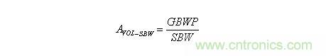 由圖 1 所示可知,像它這樣的運算放大器可以支持1 MHz頻率10 V/V (20 dB)的增益,但我們需要進一步研究。SBW 開環(huán)增益曲線的增益為: