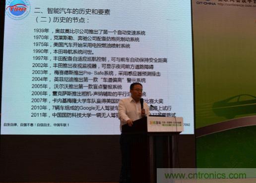 參加分論壇之“智能交通與車聯(lián)網(wǎng)產(chǎn)業(yè)發(fā)展”的主講嘉賓包括車載信息服務(wù)產(chǎn)業(yè)應(yīng)用聯(lián)盟秘書長(zhǎng)龐春霖,中國科學(xué)院微電子研究所副所長(zhǎng)、中國科學(xué)院物聯(lián)網(wǎng)研究發(fā)展中心常務(wù)副主任陳大鵬,深圳市中興物聯(lián)科技有限公司總經(jīng)理古永承先生等。龐秘書長(zhǎng)表示在智能汽車領(lǐng)域隱藏著巨大的商機(jī),隨著智能終端和手持終端交互的互聯(lián)化,主動(dòng)安全措施的標(biāo)配化等,隱藏的商機(jī)將被不斷發(fā)現(xiàn)并挖掘。陳大鵬主任從行業(yè)的融合、競(jìng)爭(zhēng)的轉(zhuǎn)變、企業(yè)的轉(zhuǎn)型、汽車與車聯(lián)網(wǎng)四大方面就車聯(lián)網(wǎng)與新能源汽車做了詳細(xì)介紹。他表示,信息技術(shù)與傳統(tǒng)行業(yè)的融合可以為傳統(tǒng)行業(yè)開辟新的局面,未來的汽車必然是電子信息和軟件主導(dǎo)的新能源智慧車輛。