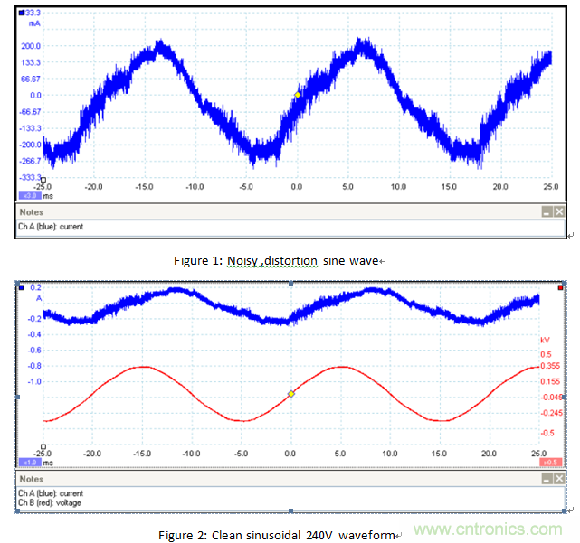 本實驗之所以臺扇為例,是因為其內(nèi)置一個小的交流電動機,能夠產(chǎn)生一個典型的電流波形和低的功率因子。
