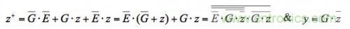 從這個(gè)公式可以看出,其中針對(duì)z+的最小項(xiàng)[E●z]不是多余的。它在最小項(xiàng)[G●E]和[G●z]之間扮演著反競(jìng)爭(zhēng)橋的重要角色,可以消除G的所有邊沿處的連續(xù)競(jìng)爭(zhēng)。