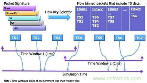 某些情況下,可能需要數(shù)百萬個資料包才能切中當前設計中穩(wěn)態(tài)分析的重點。以測量兆百萬位元組乙太網(wǎng)交換機的流量位元速率為例。采用虛擬乙太網(wǎng)簽名生成和封包時間戳記(TS)來計算這些數(shù)據(jù)。