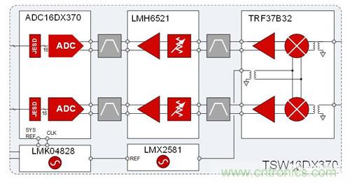 圖 2:TSW16DX370接收機系統(tǒng)參考設(shè)計