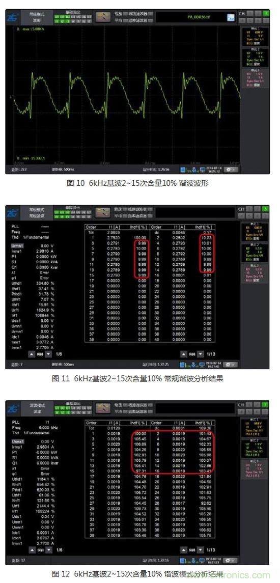信號四:基波頻率6kHz,含2~15次諧波,各次含量均為10%