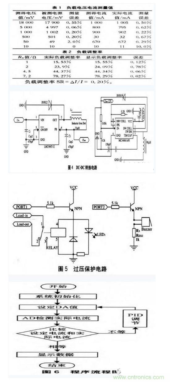 轉(zhuǎn)換器ADS1115將電壓電流回送至單片機。通過DA控制恒流源的電流,借助PID不斷修正電流至設(shè)定值,以保證電流的恒定且可調(diào),達到步進10mA的要求,并有過壓保護功能。在12864液晶上顯示實時電壓電流值和設(shè)定電流值及負載調(diào)整率,電子負載具有優(yōu)良的精度、穩(wěn)定性和動態(tài)響應(yīng),并結(jié)合精確的軟件控制,實現(xiàn)了電源測量的快速和準確。原理簡單,可行性高,成本低。