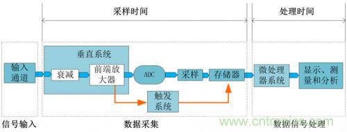 數(shù)字示波器捕獲信號的過程是典型的“采集-處理-采集-處理”過程,如圖1所示為數(shù)字示波器的采集原理,一個捕獲周期由采樣時間和(處理時間)死區(qū)時間組成,如圖2所示。