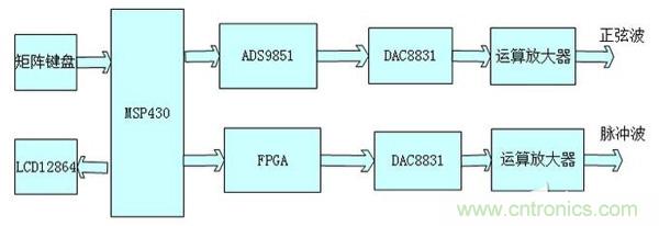 【導(dǎo)讀】本系統(tǒng)以MSP430為控制核心設(shè)計并制作一個正弦波和脈沖波信號源。本實驗分為四大模塊,分別是鍵盤掃描模塊,正弦波產(chǎn)生模塊,脈沖波產(chǎn)生模塊和液晶顯示模塊。