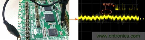 從圖中可以看出,所測(cè)的波形夾雜著許多的噪聲和雜波,直流、交流波形混在一起,沒(méi)辦法清晰的觀察紋波,導(dǎo)致無(wú)法準(zhǔn)確的測(cè)量紋波的值。很多工程師測(cè)量紋波出現(xiàn)這種情況是因?yàn)闆](méi)有掌握正確的紋波測(cè)量方法。