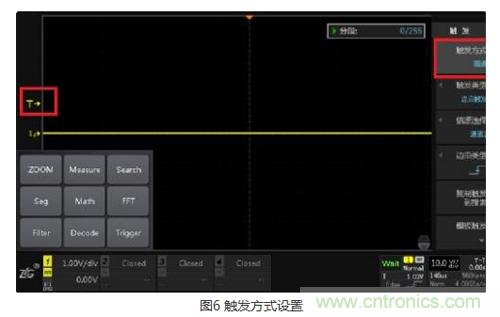設置觸發(fā)方式為【普通】,將觸發(fā)電平調到合適的位置,等待小概率異常信號到來。