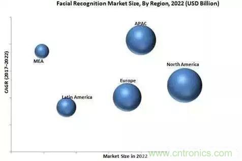 據(jù)Yole數(shù)據(jù)顯示,全球人臉識別市場規(guī)模預(yù)計將從2017年的40.5億美元增長至2022年的77.6億美元,這期間的復(fù)合年增長率可達(dá)13.9%。推動市場增長的主要因素包括:iPhone X帶動更多智能手機(jī)集成3D人臉識別,公共場所日益增長的監(jiān)控需求,以及政府部門等各個產(chǎn)業(yè)對人臉識別技術(shù)的應(yīng)用增長。