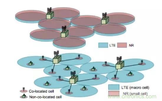對(duì)于NSA部署,可選擇共站部署和非共站部署兩種方式。