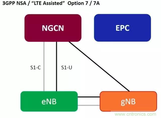 這次凍結(jié)的3GPP R15 NSA(5G NR非獨(dú)立組網(wǎng))核心標(biāo)準(zhǔn)部分內(nèi)容:,即沿用4G核心網(wǎng)(EPC),以4G作為控制面的錨點(diǎn),采用LTE 與 5G NR雙連接的方式,利用現(xiàn)有的LTE網(wǎng)絡(luò)部署5G,以滿足領(lǐng)先運(yùn)營商快速實(shí)現(xiàn)5G覆蓋的需求。