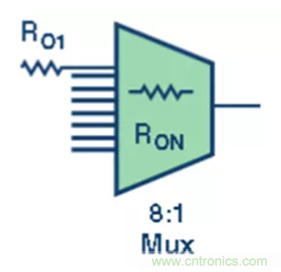 圖3. 此 8:1 多路復(fù)用器有 8 個緩沖輸入。