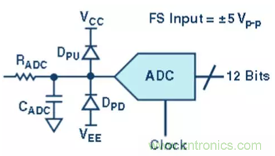電容提供了一個簡單的低通抗混疊濾波器 (AAF),用以衰減目標(biāo)頻帶之外的信號和噪聲。AAF 的設(shè)計在很大程度上取決于系統(tǒng)的設(shè)計和應(yīng)用。最后,上拉和下拉二極管可增添輸入保護(hù)功能,可防止有可能被施加到轉(zhuǎn)換器輸入端的極端過載信號導(dǎo)致的任何故障狀況。
