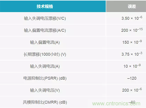 眾所周知,放大器還遠(yuǎn)遠(yuǎn)沒有達(dá)到理想水平。它們有許多誤差,一般都列示于數(shù)據(jù)手冊當(dāng)中。失調(diào)電壓和偏置電流是兩種常見的誤差,但同時也要考慮任何漂移誤差、長期誤差和隔離誤差(如電源抑制比(PSRR))。表1列出了在使用放大器時應(yīng)考慮的下列誤差。