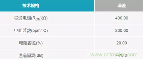 多路復(fù)用器的誤差一般少于放大器。在各種多路復(fù)用器直流誤差中,導(dǎo)通電阻和通道隔離是影響最大的誤差。表 2 列出了在使用多路復(fù)用器時應(yīng)考慮的誤差。