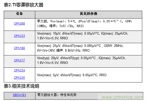 下面的表2重點介紹了TI的一些零漂移放大器。有關(guān)完整列表,請點擊查看德州儀器的參數(shù)搜索工具結(jié)果。