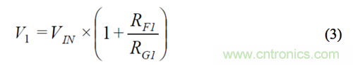 另外,輸入放大器的偏置電流會(huì)導(dǎo)致因增益而異的失調(diào)。由于輸入放大器和輸出緩沖器采用同一芯片,因此可以利用其偏置電流的相對匹配性來消除上述失調(diào)變化。將一個(gè)大小等于 RF2與 RF1之差值的電阻與開關(guān) S2A 串聯(lián),可以減少失調(diào)-電壓差。下面的推導(dǎo)公式說明,在 V1 采樣可產(chǎn)生所需的信號增益,且無增益誤差。RS表示開關(guān)電阻。V2 可以利用同樣的方法導(dǎo)出。