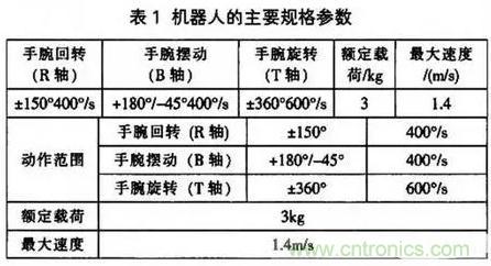 確定了空間結(jié)構(gòu)和手腕結(jié)構(gòu)后,可確定手腕回轉(zhuǎn)、手腕擺動(dòng)及手腕旋轉(zhuǎn)三個(gè)姿態(tài)的自由度。其參數(shù)見表l (參數(shù)來于SSA2000工業(yè)機(jī)器人)。