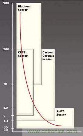 有些令人驚訝的是,一些在“普通”溫度下的常用傳感器甚至可以在較寬的個位數(shù)區(qū)間內(nèi)工作(圖1),其中包括RTD(使用鉑或銠鐵)、鍺,甚至經(jīng)典的碳基電阻器。然而,這些裝置的強磁場會引起幾K的傳感器誤差。研究現(xiàn)狀是,對低K傳感的需求非常大,以至于這些傳感器是許多供應(yīng)商提供的標準目錄產(chǎn)品(想一想,這是相當驚人的)。