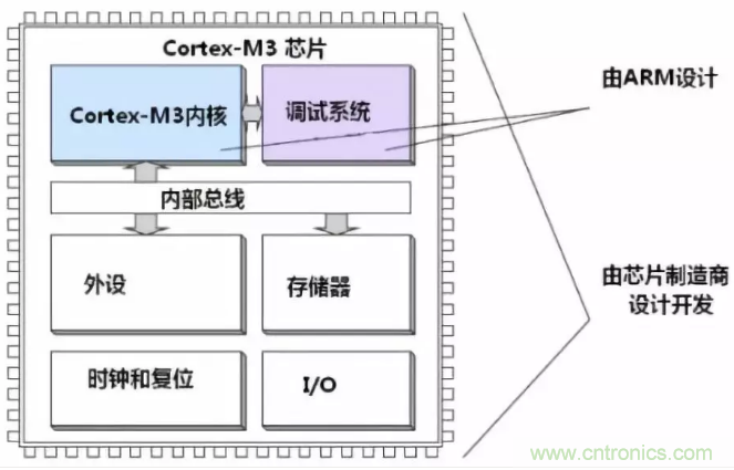 10、ARM公司只生產(chǎn)內(nèi)核標(biāo)準(zhǔn),不生產(chǎn)芯片。ST、TI這樣的公司從ARM公司那里購買內(nèi)核,然后外加自己的總線結(jié)構(gòu)、外設(shè)、存儲器、始終和復(fù)位、I/O后就組成了自己的芯片。