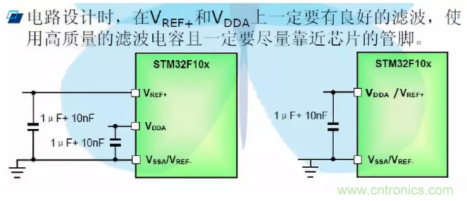 15、ADC的Vref+和Vdda與VSS,Vref-一定要加高質(zhì)量的濾波電容,切靠近單片機(jī)。