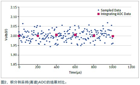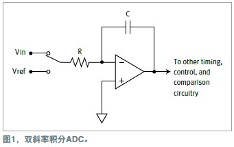 傳統(tǒng)上精密的SMU(信號源測量單元)均采用了積分式的模擬/數(shù)字變換器(ADC),這可以讓信號在一定時(shí)間間隔(稱為積分時(shí)間)內(nèi)平均。圖1描述了一種經(jīng)過簡化的雙斜率積分ADC,其基本工作原理是用未知的信號對電容充電,然后在基準(zhǔn)電壓下讓電容放電。充電和放電的時(shí)間的比例與未知信號與基準(zhǔn)信號間的比例成正比。雖然這一ADC技術(shù)可以提供很高的精度和對噪聲的出色耐受能力,但電容的充電-放電循環(huán)會造成測量的間隔過長(至少50µs),這會讓測量速度大大降低。相比之下,高速ADC能夠以高達(dá)1MHz的猝發(fā)速率來對信號進(jìn)行采樣。與積分ADC不同的是,這些高速的ADC采用了類似于示波器的采樣技術(shù),即可以獲取隨時(shí)間變化的信號的快照。它們可以提供高于示波器的分辨率(分別為18位和8位),從而可以以與之相當(dāng)?shù)膸拋硗瓿筛_的瞬態(tài)特性測量。