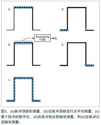 有時(shí),對脈沖通過器件或者系統(tǒng)時(shí)的傳輸特性的測量也很有意義。這些應(yīng)用需要對整個(gè)脈沖進(jìn)行數(shù)字化,包括其上升沿和下降沿(圖3c)。通過高速ADC來進(jìn)行異步于源操作的測量,就可以完成這種測量。