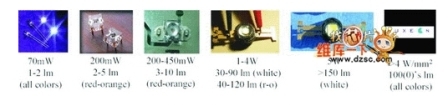 而尾燈組對于亮度需求約300 ̄500lm,一般選用1W的SMT封裝結(jié)構(gòu),單體封裝亮度約10 ̄20lm,效率可達15 ̄40lm/W。以上都是已經(jīng)應(yīng)用于車體的光源,而目前LED廠與車廠正積極合作,試著將LED導入前照系統(tǒng)(頭燈、霧燈)中,其中車廠對于頭燈的亮度需求約2000流明的白光,LED廠目前則應(yīng)用高瓦數(shù)的SMT?。蹋牛姆庋b架構(gòu),每單體封裝可輸出100 ̄200lm,效率預期提高至50 ̄100lm/W。