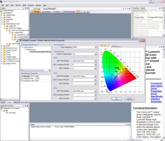 許多色彩系統(tǒng)設(shè)計(jì)擁有不同的回饋方法,需要花數(shù)個(gè)月的時(shí)間來開發(fā)韌體。解決bin的調(diào)整、溫度補(bǔ)償、或更高精準(zhǔn)度的色彩回饋系統(tǒng)以及校正,都需要了解色彩科學(xué)以及精準(zhǔn)的傳感器讀數(shù)。在展開任何高亮度LED設(shè)計(jì)時(shí),強(qiáng)烈建議您先了解這些相關(guān)名詞。幸運(yùn)的是,當(dāng)您進(jìn)入市場(chǎng)時(shí),能利用Cypress Semiconductor所提供快速且輕易的PSoC Express 3.0解決方案,協(xié)助您快速展開研發(fā)。所有這些不同的回饋解決方案,以及高亮度LED的補(bǔ)償機(jī)制,都收錄在一個(gè)簡單易用的圖形化接口,讓您僅須使用下拉式選單以及各種校正技巧,就能完成這些設(shè)計(jì)。