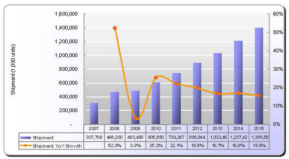 DisplaySearch日前發(fā)表《全球觸控面板市場(chǎng)分析與預(yù)測(cè)報(bào)告》指出,2008年全球觸控面板出貨超過4.6億片,雖然較2007年大幅成長(zhǎng)52%,但由于受到經(jīng)濟(jì)沖擊的影響,2009年估計(jì)出貨將僅4.8億片,較2008年微幅成長(zhǎng)3.3%。