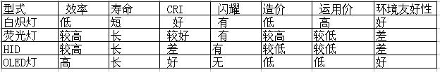 OLED燈的特點及與現(xiàn)有光源的比較