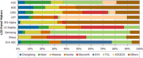 - 在前六大中國電視機品牌中,LG Display位居第四大液晶電視面板供貨商,第二季有39.3%面板出貨給Skyworth。