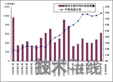 大和國(guó)泰證券(Daiwa Securities SMBC-Cathay)的數(shù)據(jù)表明,液晶電視在中國(guó)的普及正在加速。因?yàn)榧译娤锣l(xiāng)和以舊換新兩項(xiàng)內(nèi)需擴(kuò)大政策減輕了消費(fèi)者購(gòu)買液晶電視的負(fù)擔(dān)。另外,廠商和經(jīng)銷商正在快速轉(zhuǎn)向盈利的液晶電視。在購(gòu)買力強(qiáng)的北京和上海等大城市,以國(guó)美為首的大型家電量販店的貨架上已經(jīng)基本看不到顯像管電視。