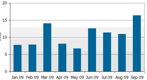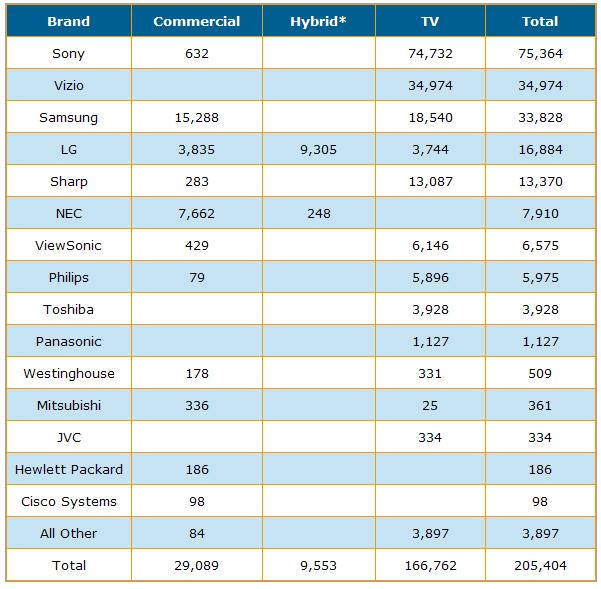 以上主要摘要說(shuō)明2009年9月份及第3季北美大型商用顯示器市場(chǎng)終端銷(xiāo)售成果,資料主要摘錄自Monthly Large Format Commercial Displays Sell Through Report。