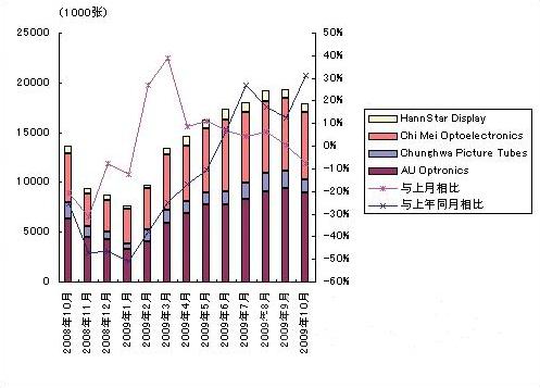 09年10月臺(tái)灣廠商大尺寸液晶面板供貨量時(shí)隔9個(gè)月比上月減少
