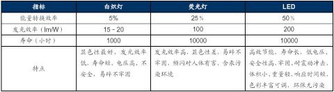表7 白熾燈、熒光燈、LED三種照明技術(shù)對比