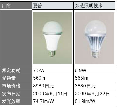 東芝照明技術(shù)在2006年發(fā)布LED燈泡時(shí),LED燈泡整體的發(fā)光效率僅為18lm/W,只能夠替換裝飾用燈泡。之后,LED燈泡的效率逐步提高到2007年的45lm/W、2008年的68lm/W,已經(jīng)可以作為聚光照明用燈泡使用,2009年的82lm/W以及10月的93lm/W更是達(dá)到了替代普通照明用燈泡的水平。
