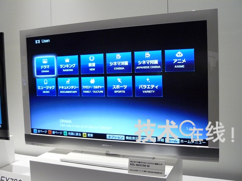 EX700系列還強(qiáng)化了網(wǎng)絡(luò)功能。新配備了名為“BRAVIA網(wǎng)絡(luò)頻道”的功能。用戶可利用索尼自主設(shè)計的操作畫面搜索并使用美國谷歌的視頻共享服務(wù)“YouTube”、USEN的VOD服務(wù)“U-NEXT”,acTVila的VOD(video on demand)服務(wù)“acTVila Video Full”。該公司預(yù)定2010年春季以后陸續(xù)啟動這些服務(wù)。