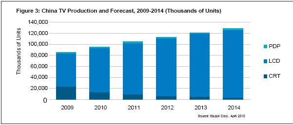 據(jù)iSuppli公司,中國電視市場(chǎng)已經(jīng)是全球舞臺(tái)上的主角,預(yù)計(jì)2010年再度有強(qiáng)勁表現(xiàn),整體電視產(chǎn)量上升,同時(shí)對(duì)于液晶電視的需求大增。