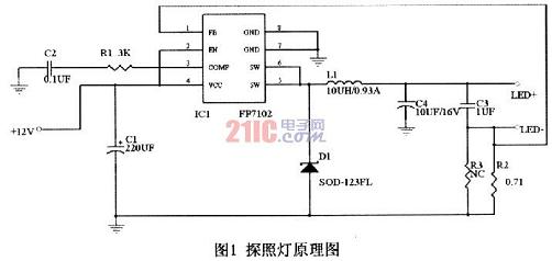 FP7102芯片設(shè)計的小型探照燈,所有元器件安放在1×2.7cm的板子上,制作完成后整個燈可以塞進直徑為3cm的管子里,管子長度可以任意長。為了達到應(yīng)用板小型化,在此設(shè)計中使用FP7102芯片作為LED的驅(qū)動芯片,電路可靠度高、元件使用精簡、整體高效能運作,在應(yīng)用上有很大的彈性空間,可滿足各種功率LED需要。