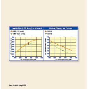 因此,提高熱/冷因數(shù)能顯著提高運(yùn)行在更高結(jié)溫下的LED性能,可以用更少的LED獲得同樣的光輸出,以降低功耗和系統(tǒng)整體成本。為一個特定應(yīng)用選擇LED時候,重要的是要評估真實(shí)條件下的LED表現(xiàn),而不是只依靠數(shù)據(jù)表。