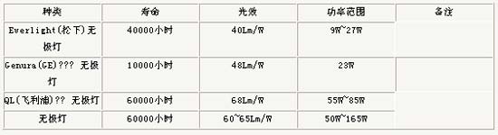 無極燈與國外同類產(chǎn)品主要技術(shù)指標(biāo)比較