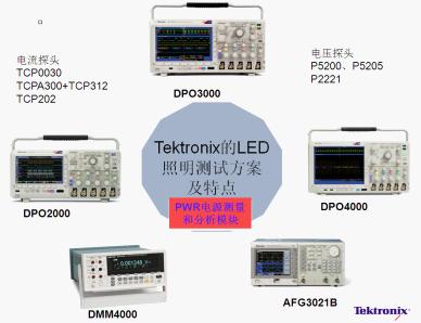 圖1:泰克專門針對(duì)LED照明應(yīng)用提供各種測(cè)試解決方案組合供客戶選擇。