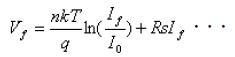 式中,Vf為正向電壓,If為正向電流,I0為反向飽和電流,q為電子電荷,k是玻爾茲曼常數(shù),Rs是串聯(lián)電阻,n是表征P/N結完美性的一個參量,處在1~2之間。式(3)的右邊只有反向飽和電流I0與溫度密切相關,I0值隨結溫的升高而增大,導致正向電壓Vf值的下降。實驗指出,在輸入電流恒定的情況下,對于一個確定的LED器件,兩端的正向壓降與溫度的關系可由式(4)表示: