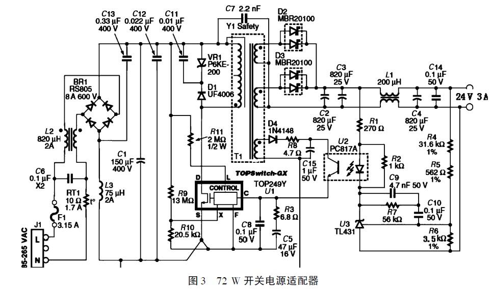 2 基于TOP249Y的72W開關(guān)電源適配器設(shè)計