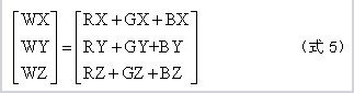 而白色的色坐標Wx,Wy以及白色亮度值WY都可以通過RGB三色的XYZ三刺激值的疊加計算得到: